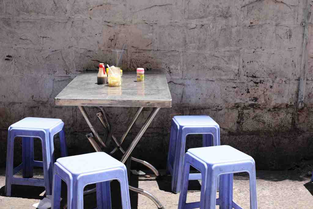This table waits anticipating sunset and the casual dinner conversations that become more animated with each shared bottle of beer.